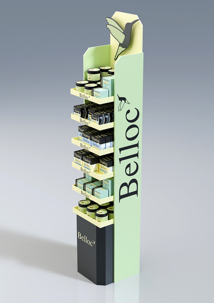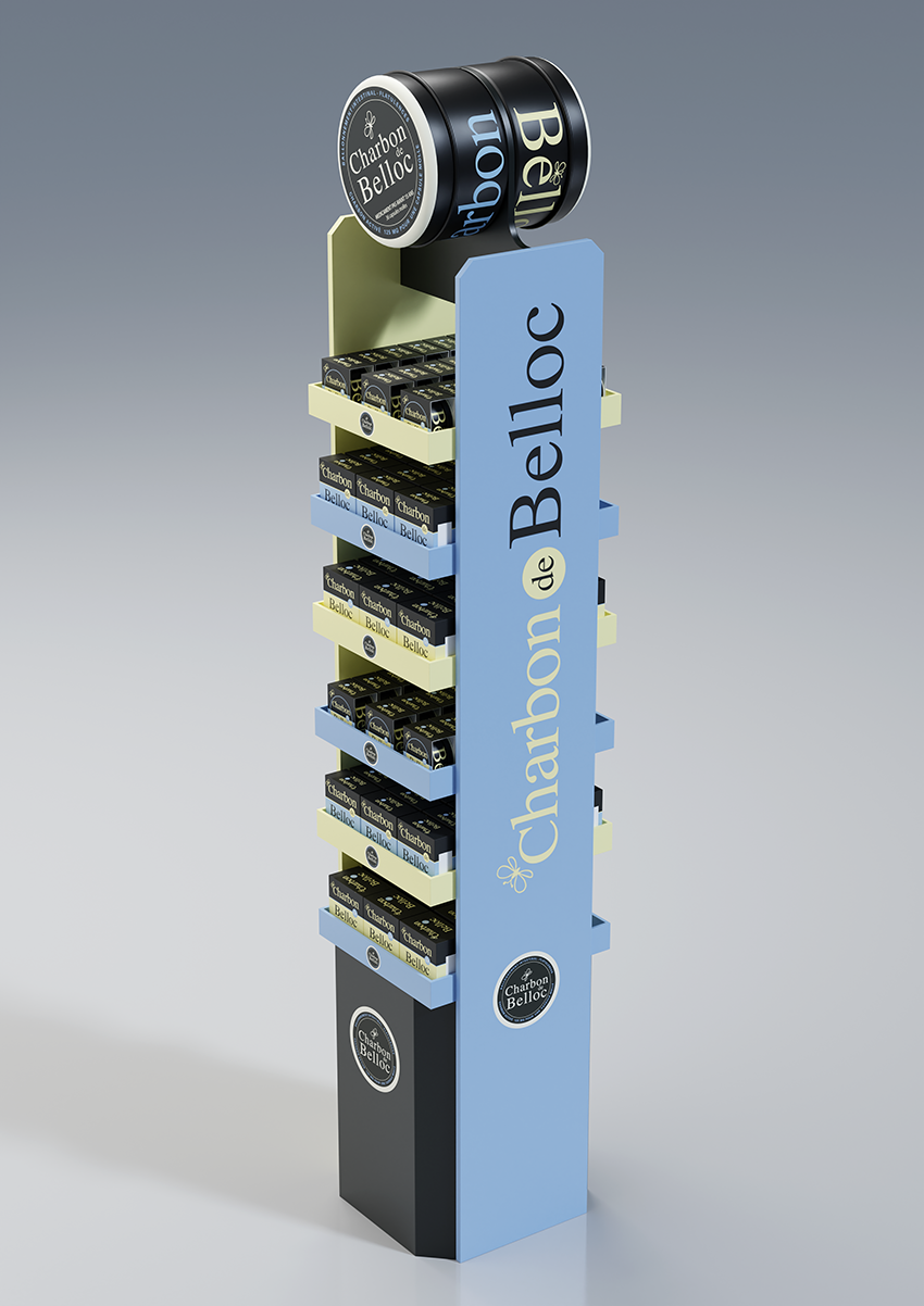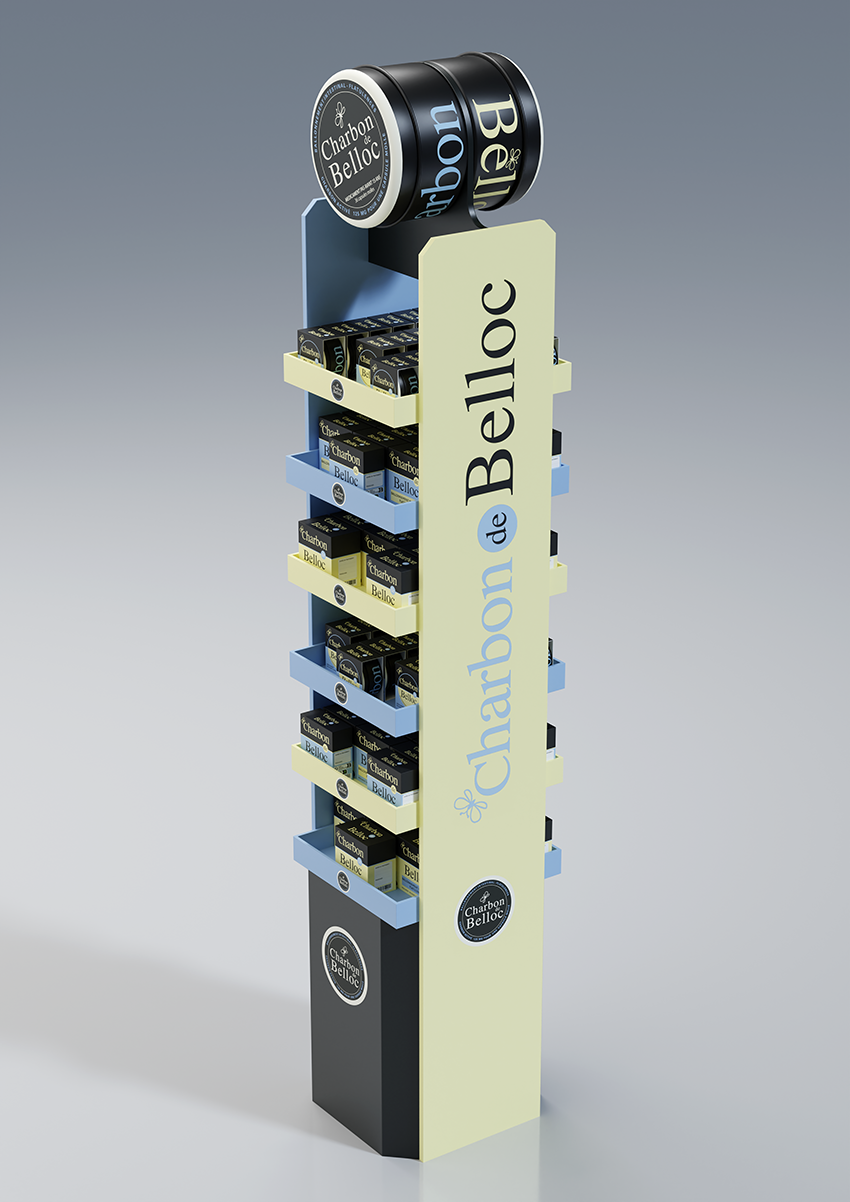 Modélisation des packs de la PLV, création des textures et mapping. Rendus CGI.