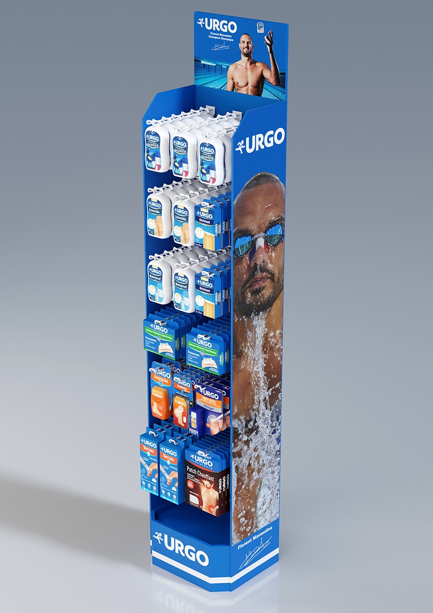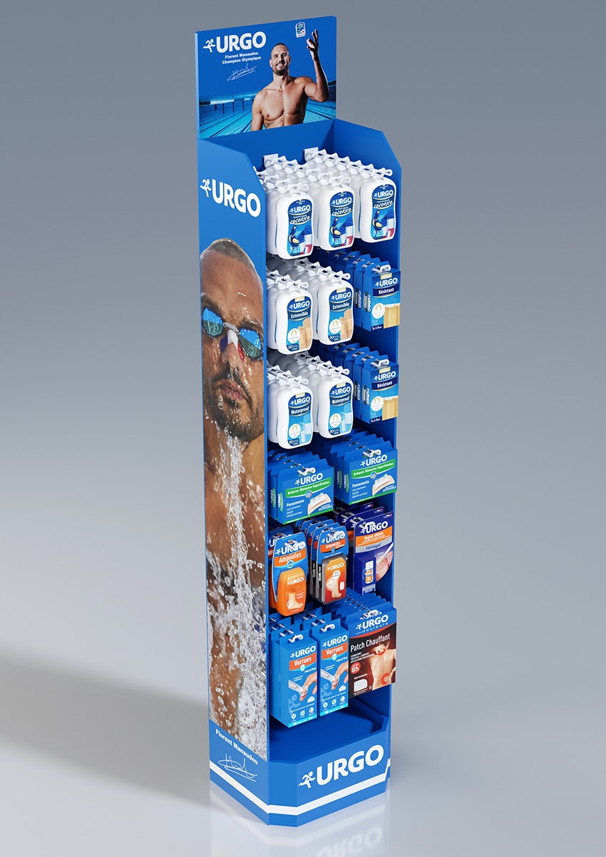 Urgo pansements J.O. 2024 égérie Florent Manaudou / PLV de sol.