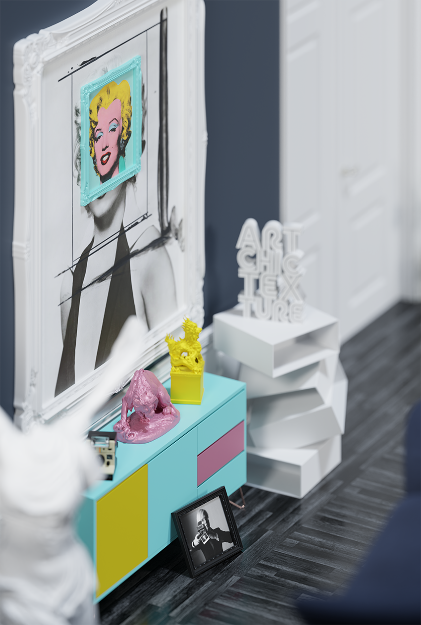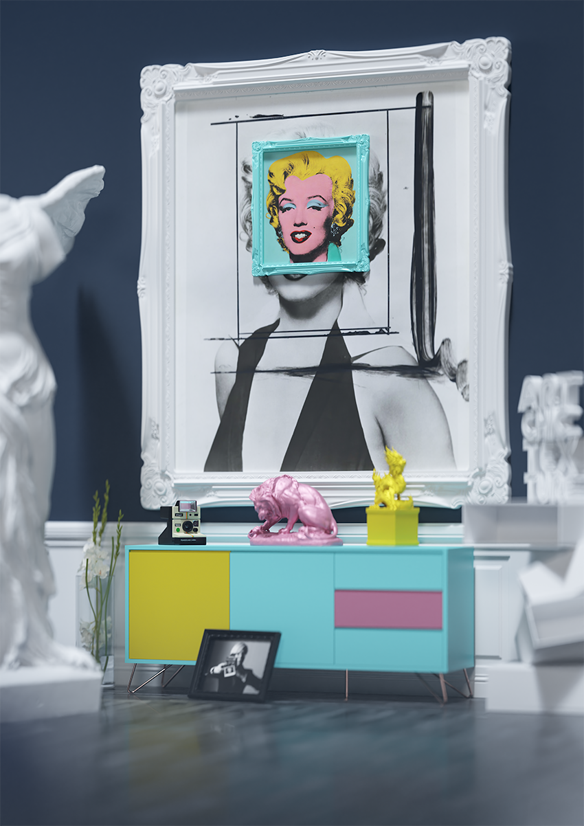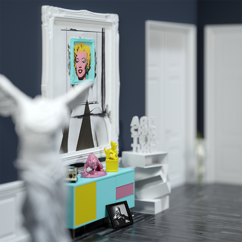 Recherche sur la composition graphique de la scène, des matières, des lumières et des textures.