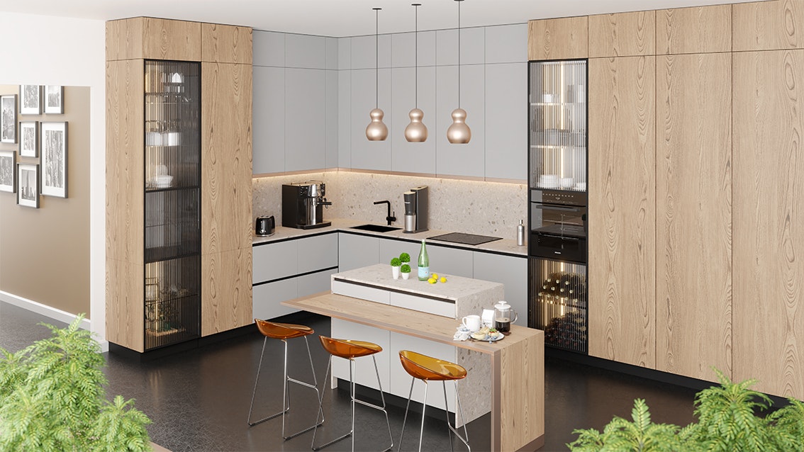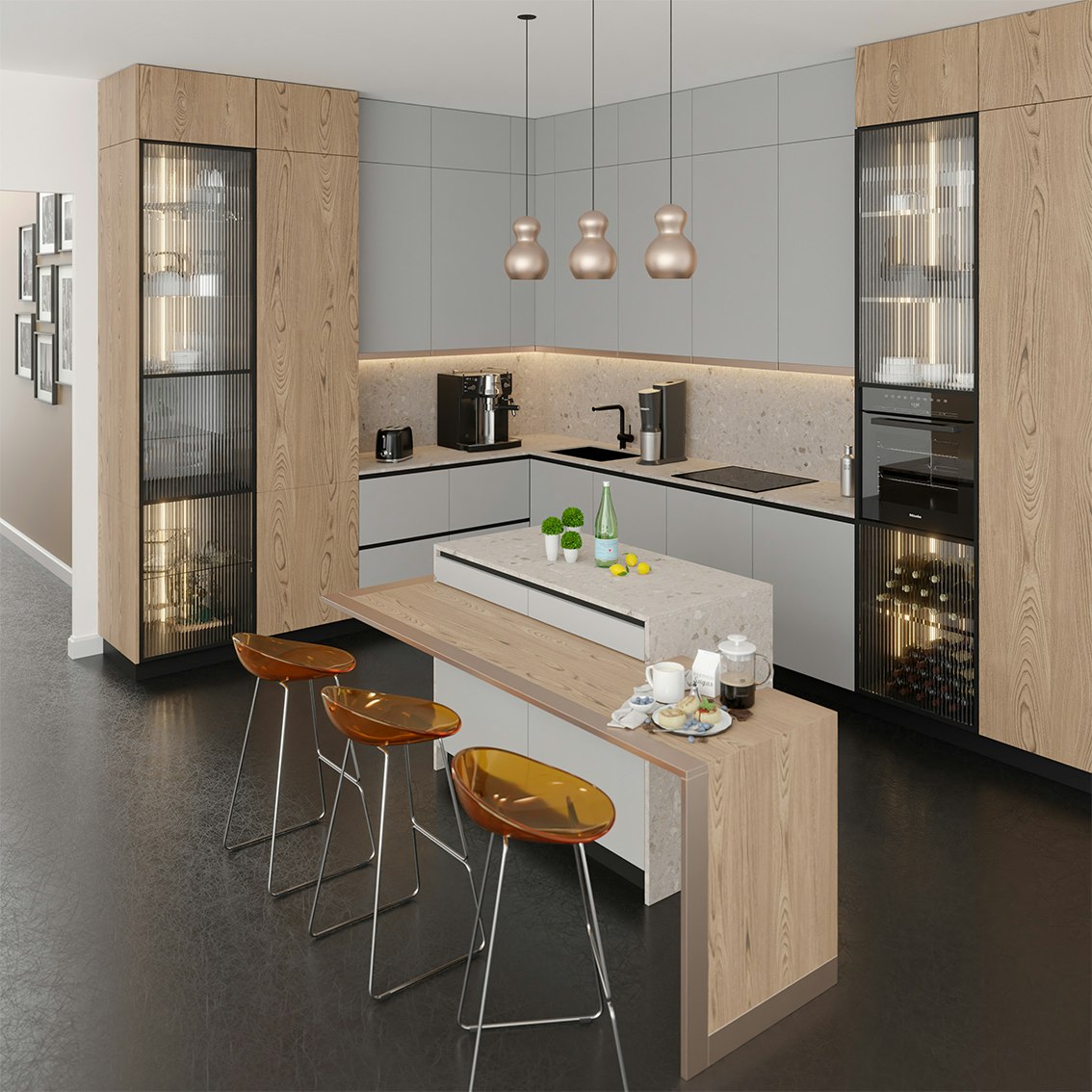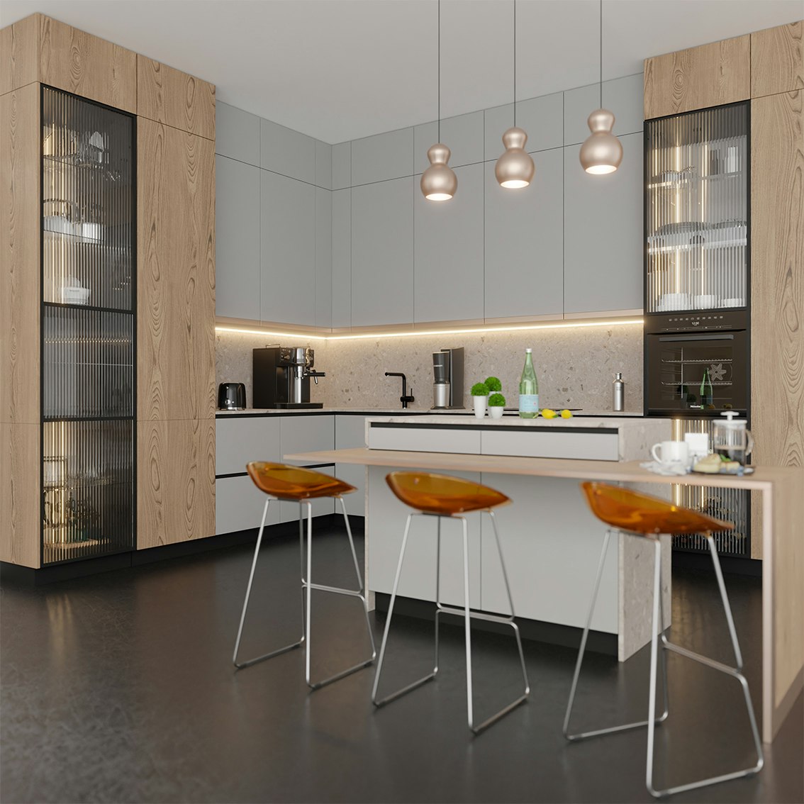 Modélisation, composition et mise en lumière d'un intérieur cuisine pour la visualisation architecturale.