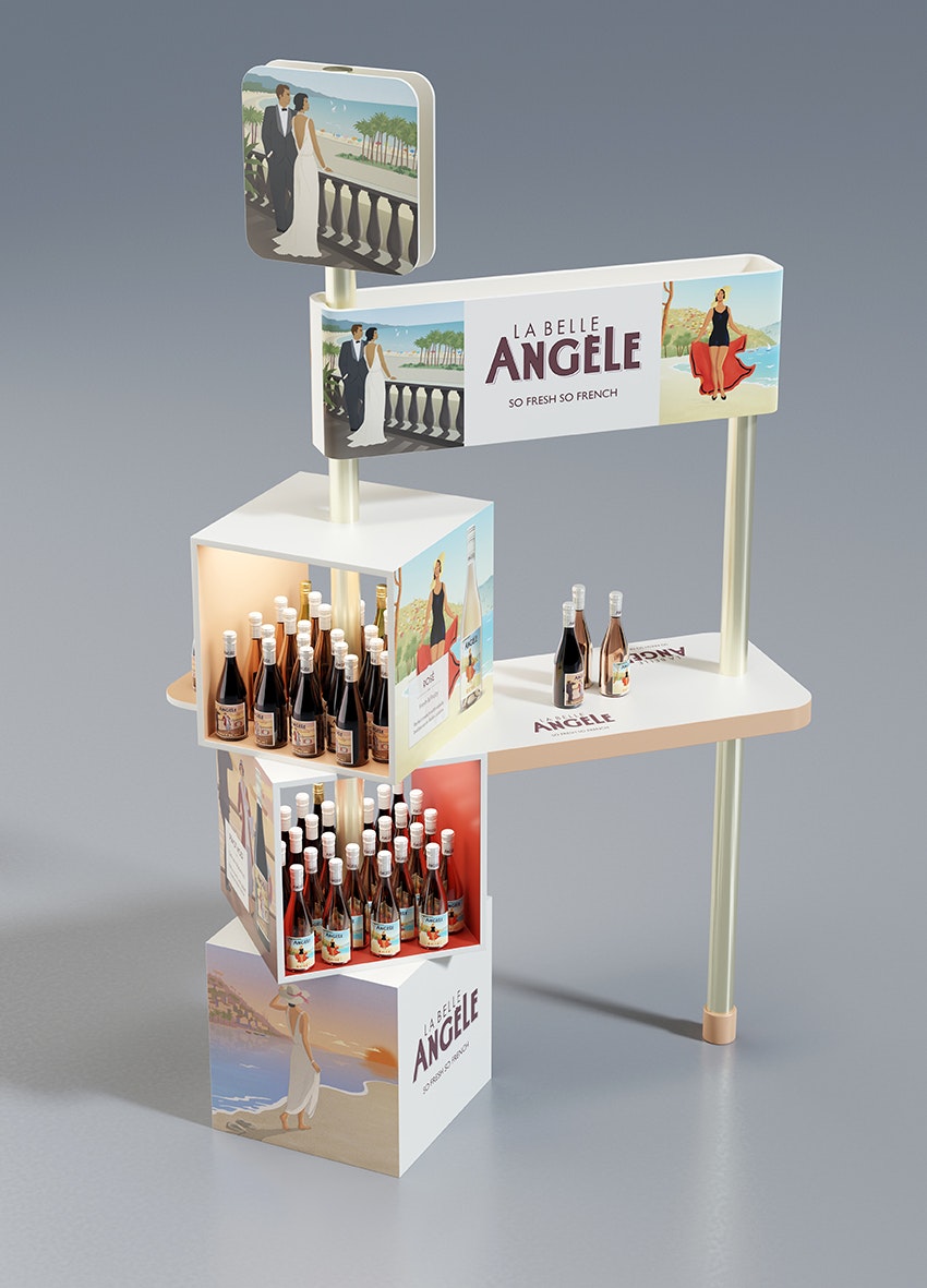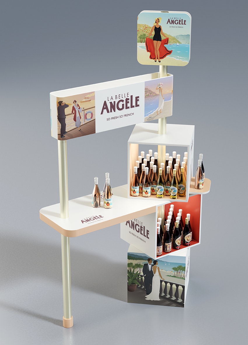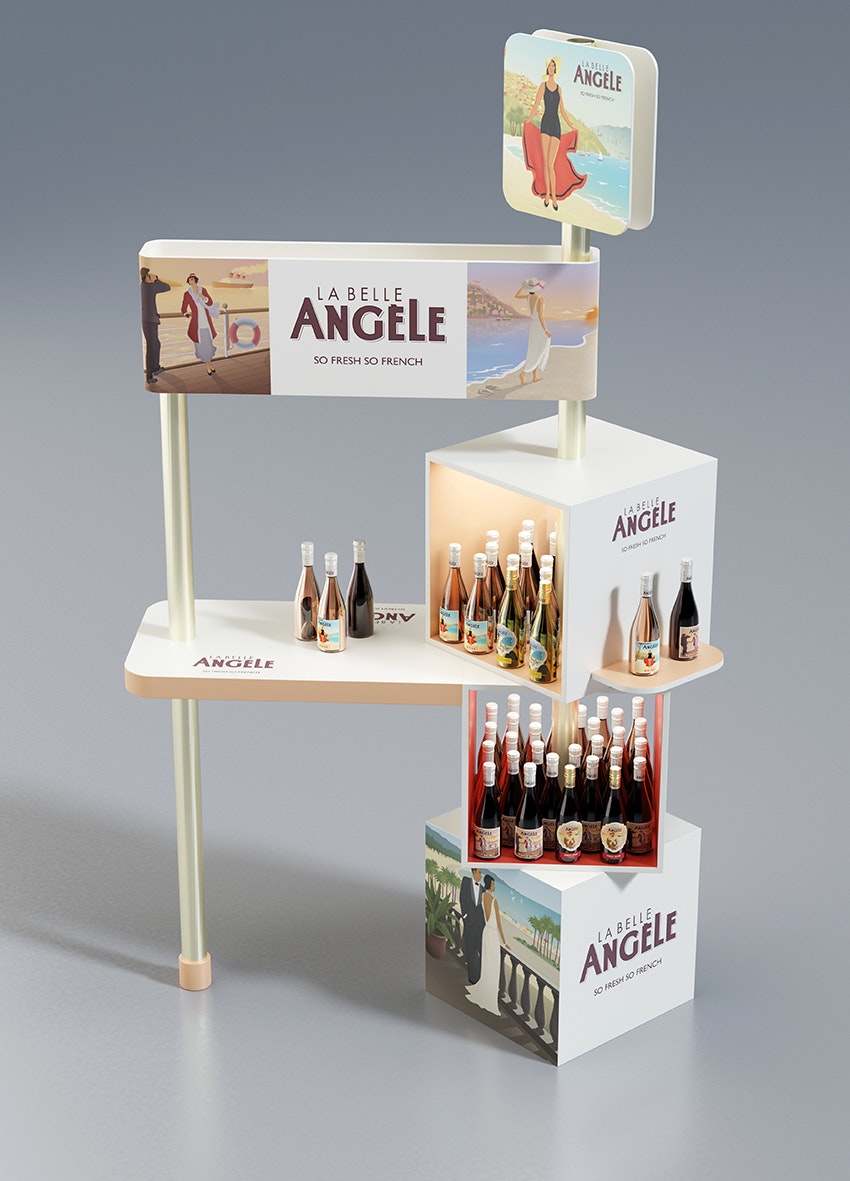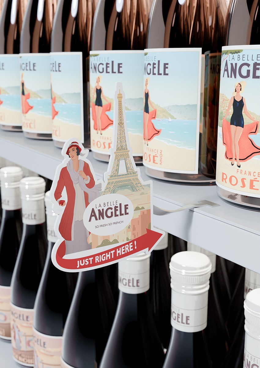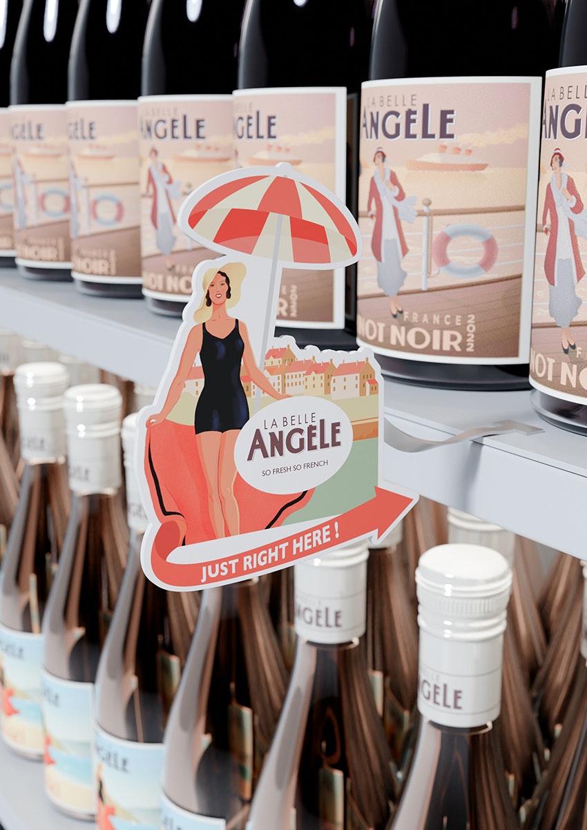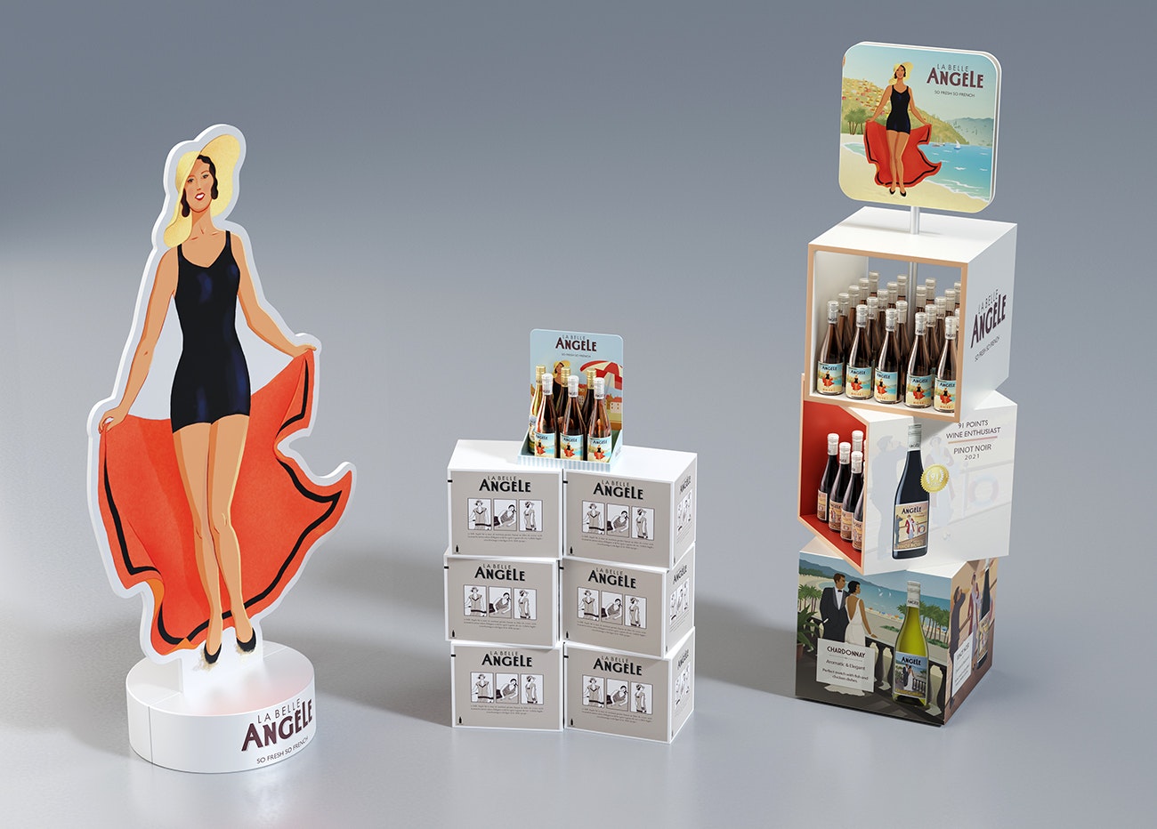 La Belle Angèle / PLV de sol, de comptoir, stop rayon, silhouettes, théatralisation.