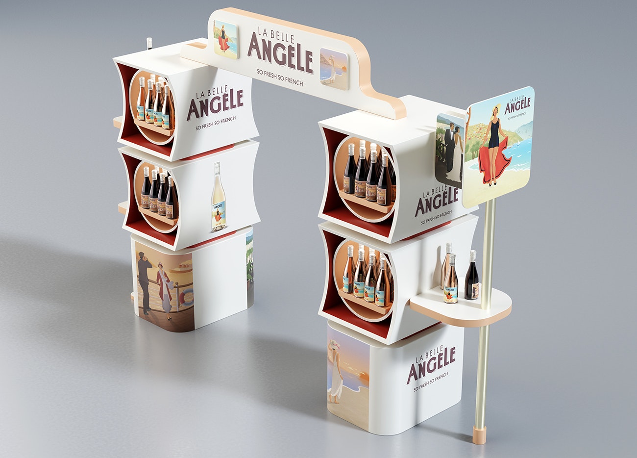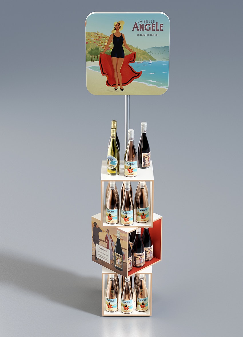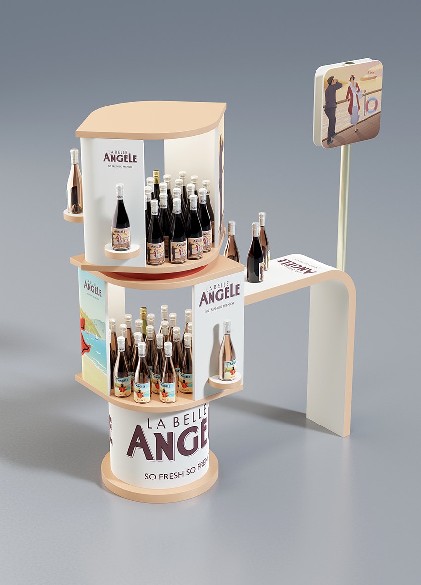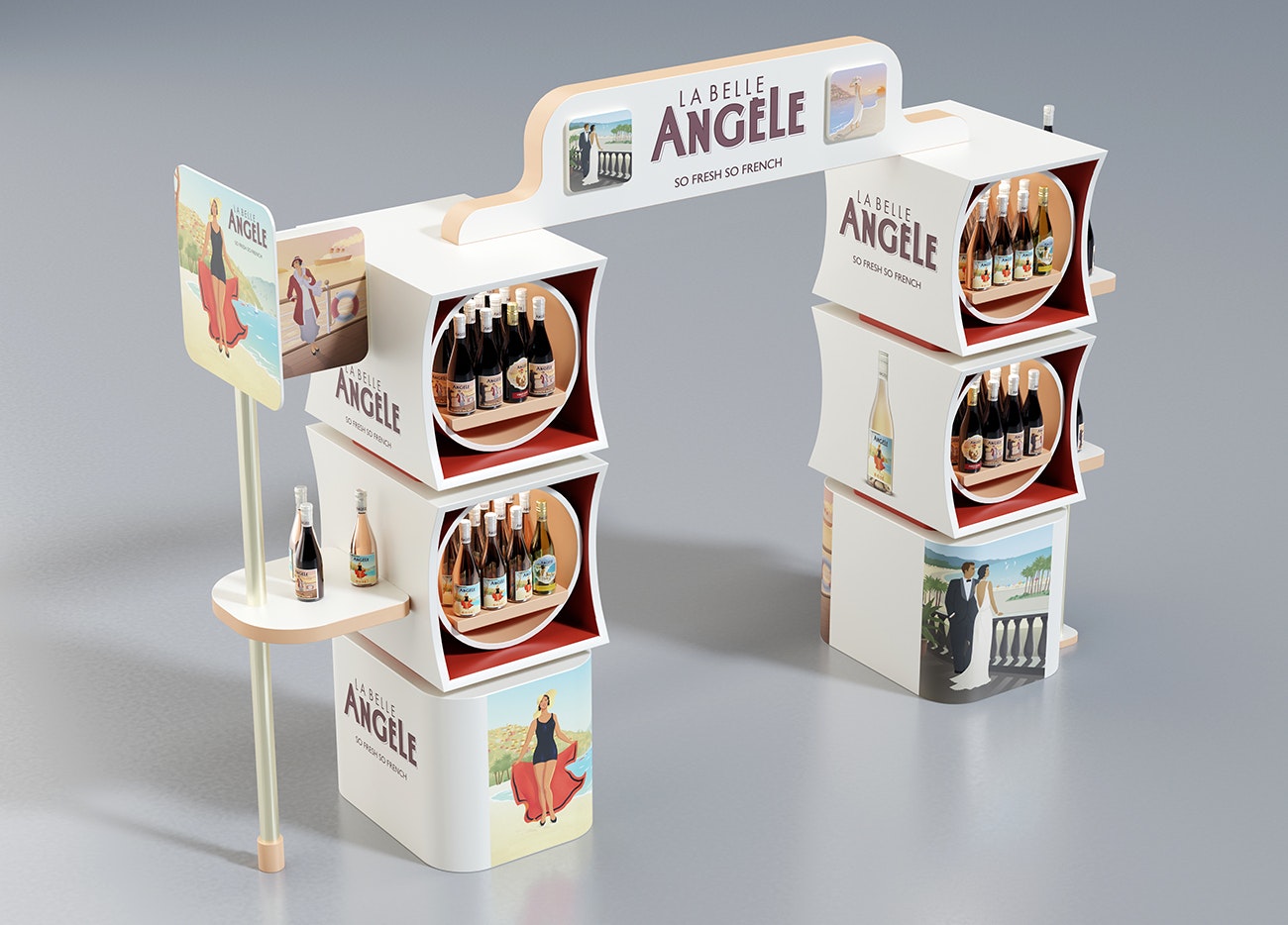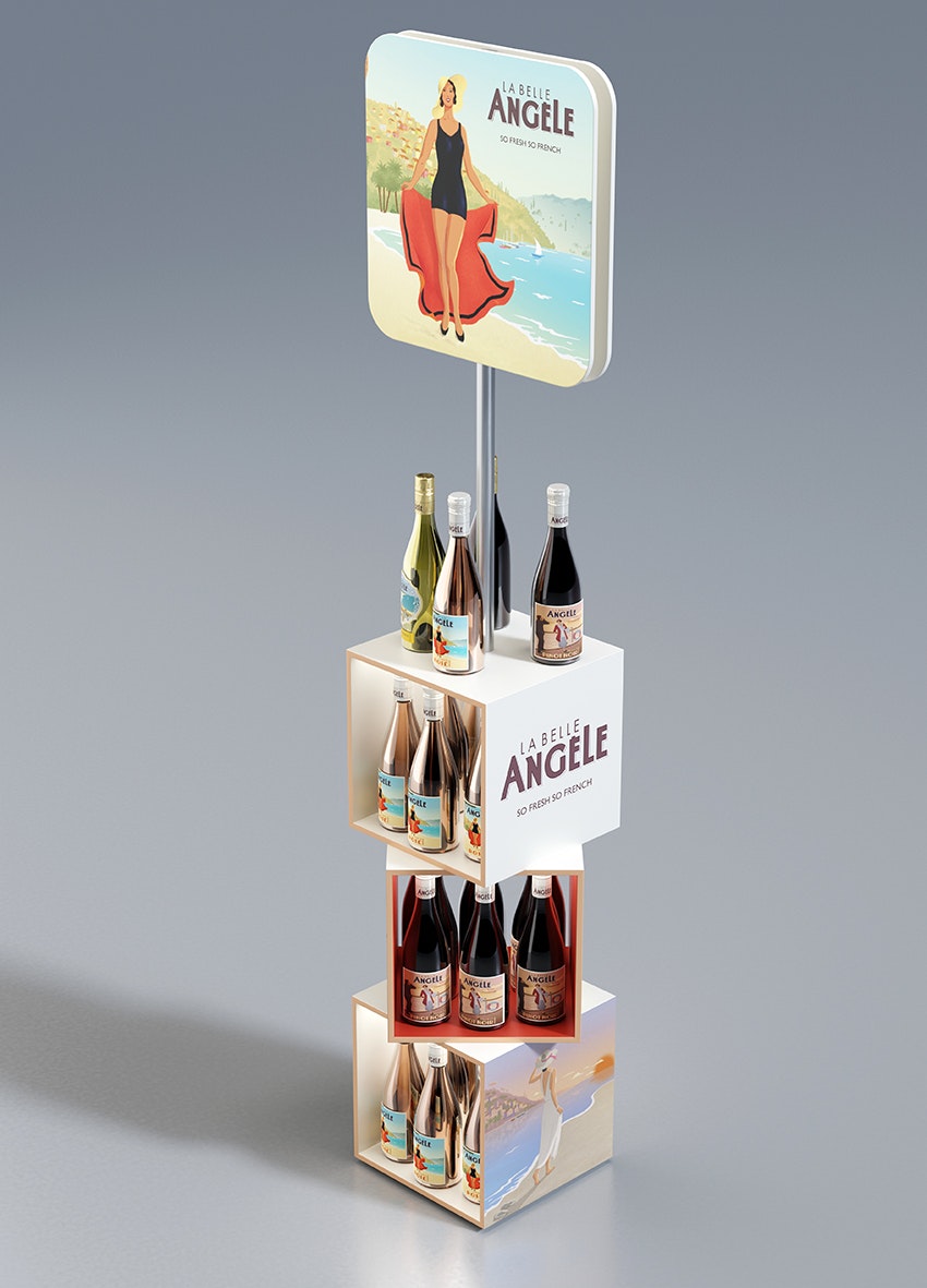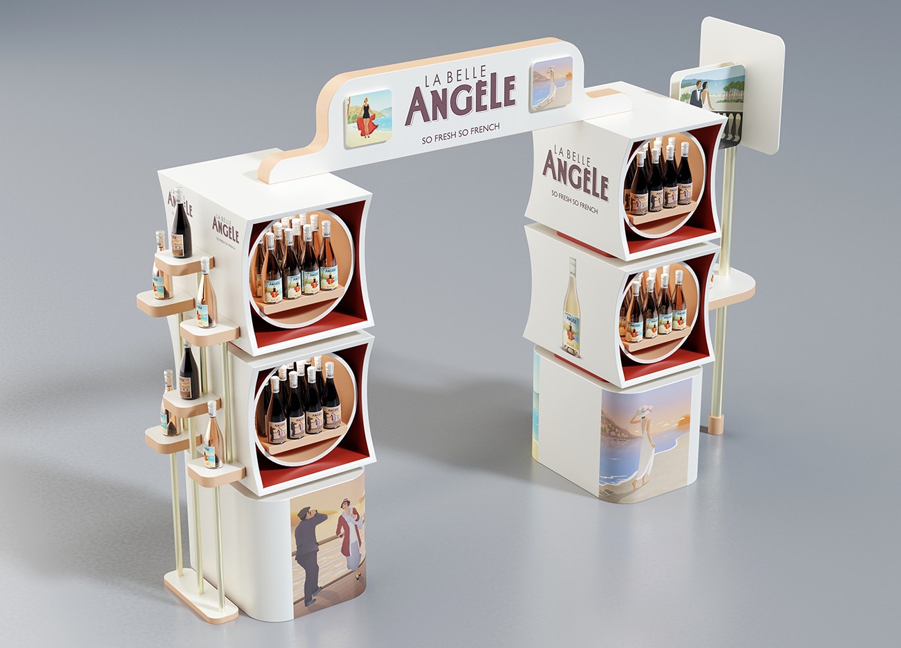 La Belle Angèle / PLV de sol, de comptoir, stop rayon, silhouettes, théatralisation.