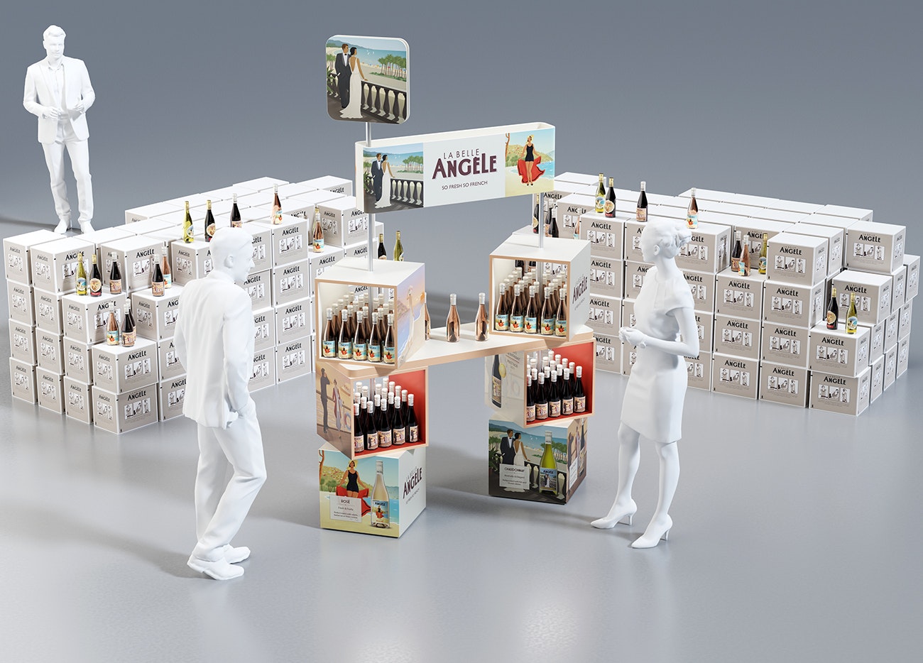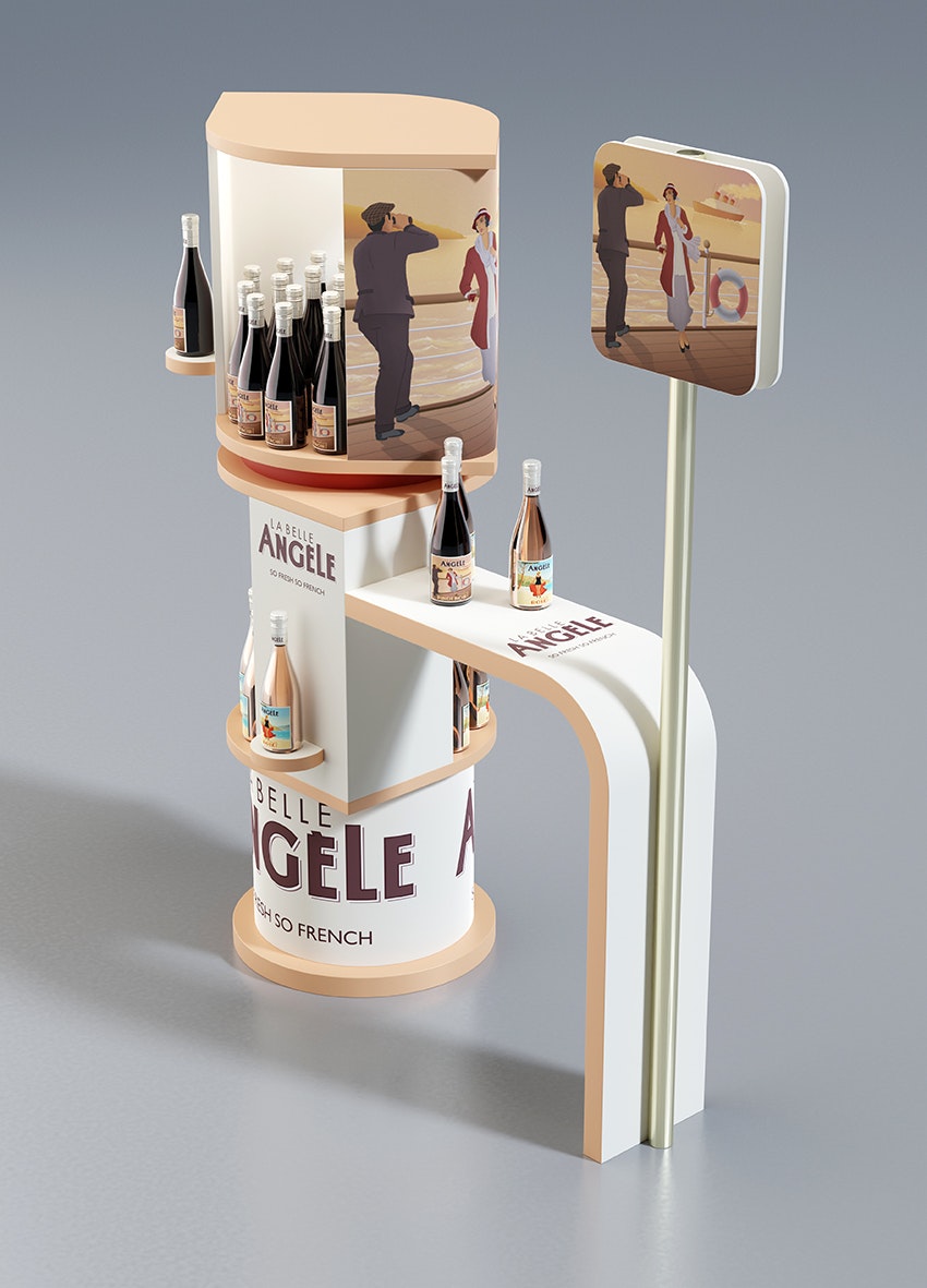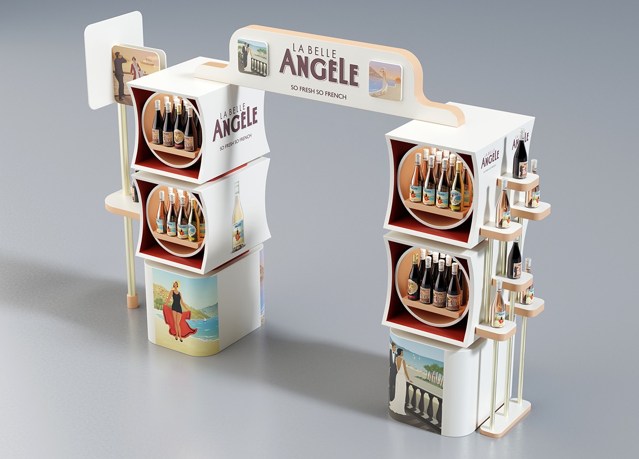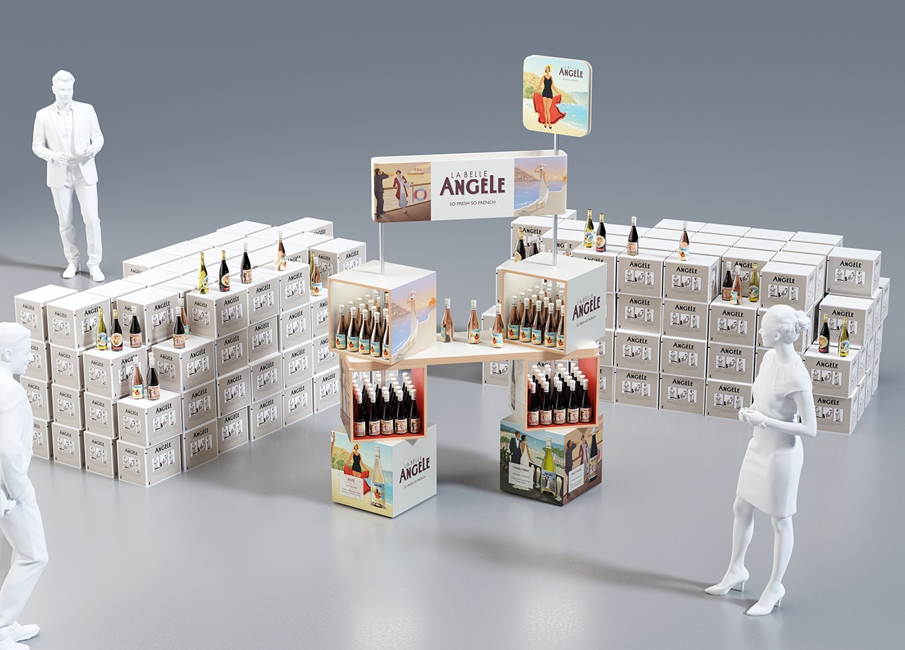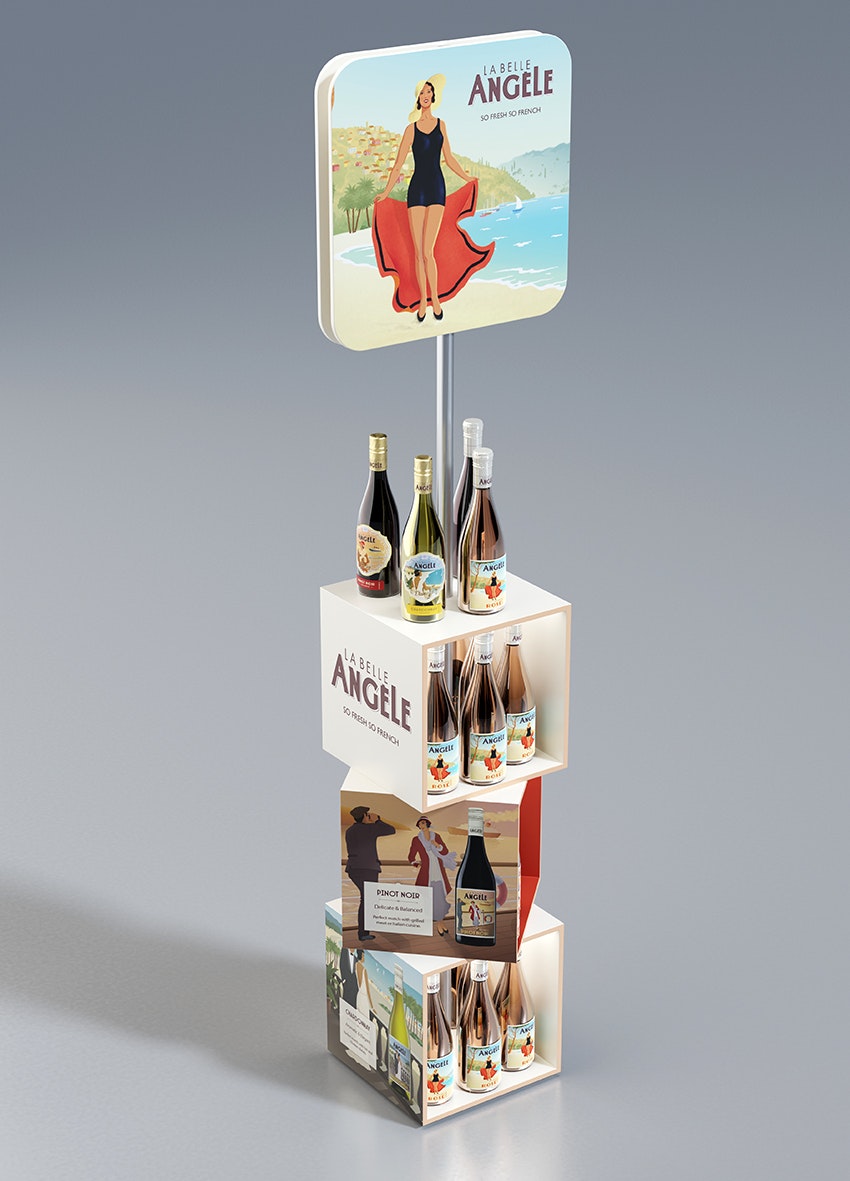 La Belle Angèle / PLV de sol, de comptoir, stop rayon, silhouettes, théatralisation.