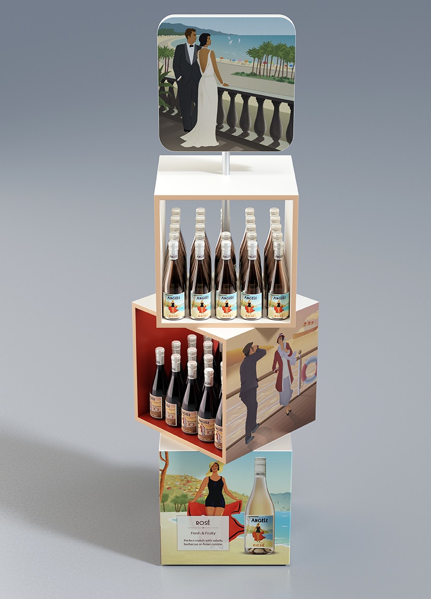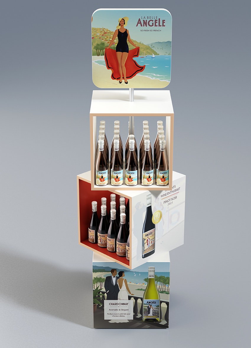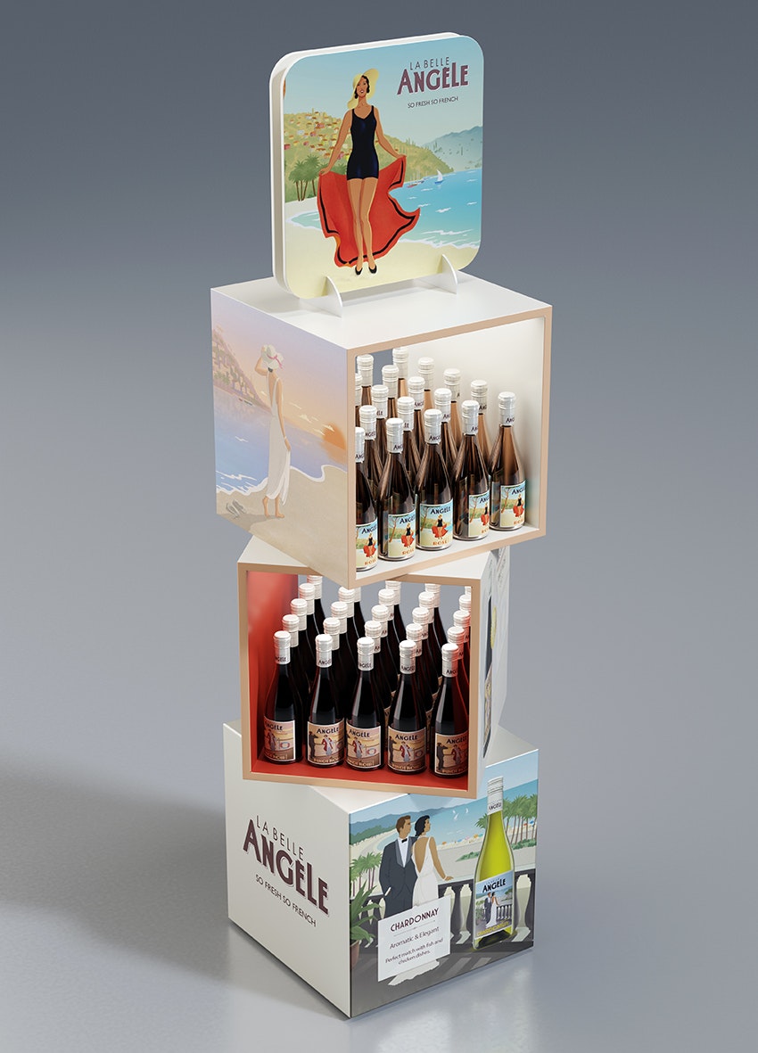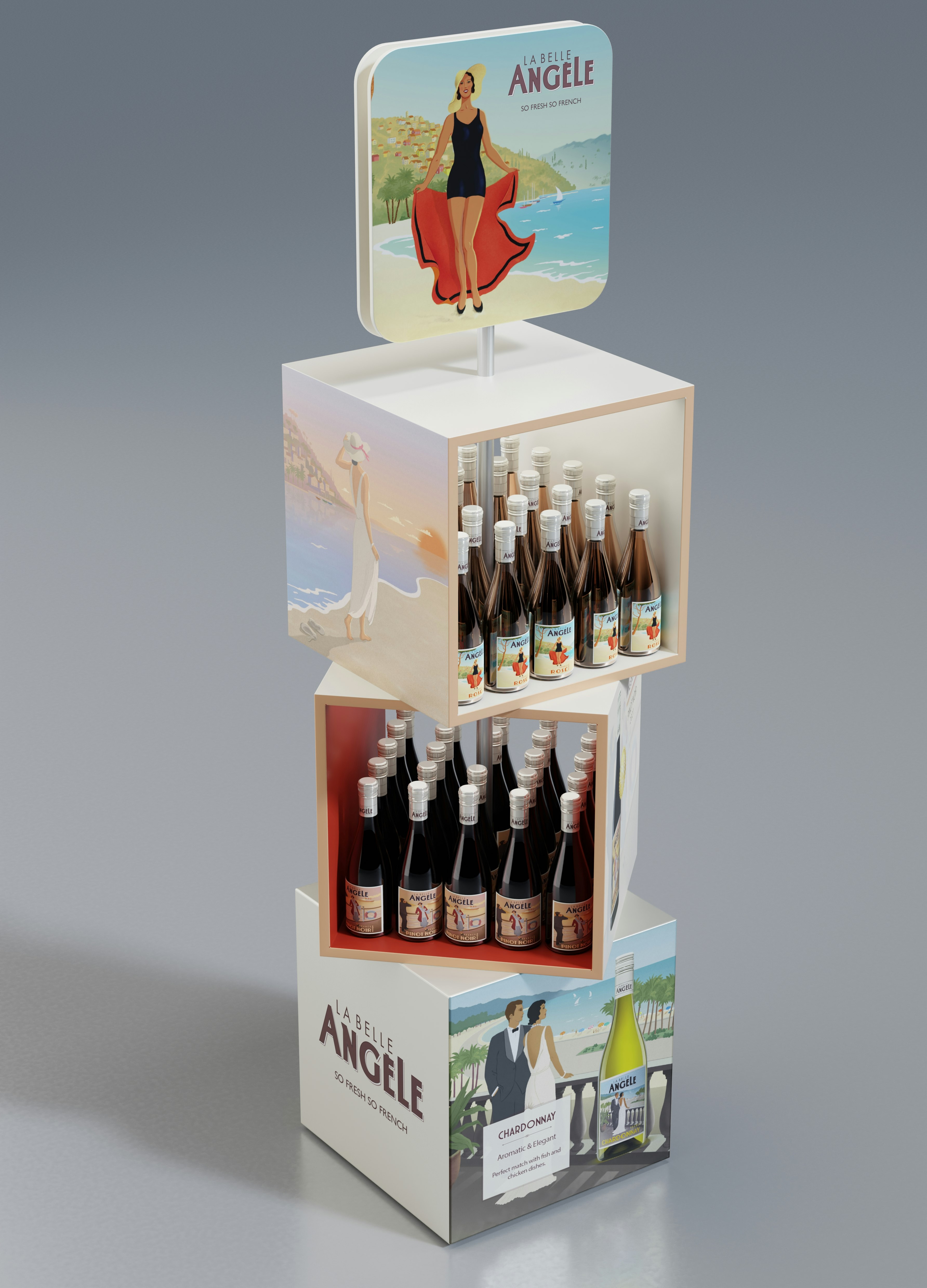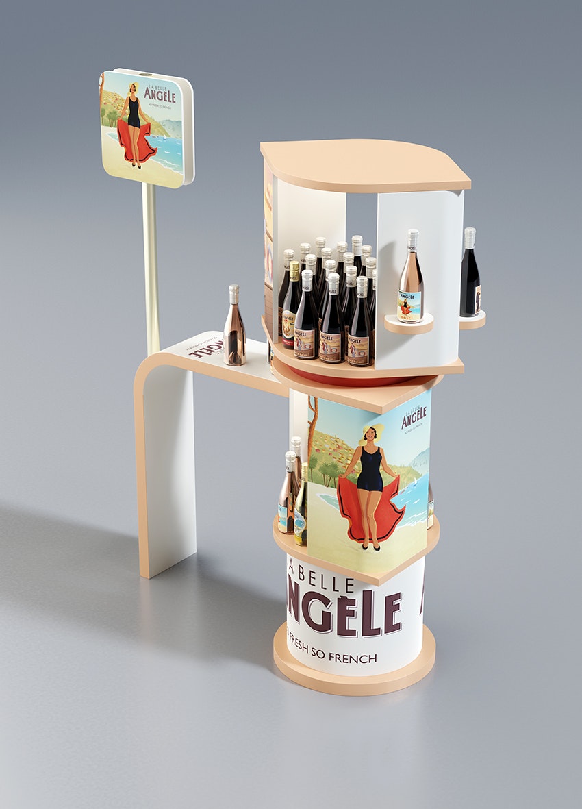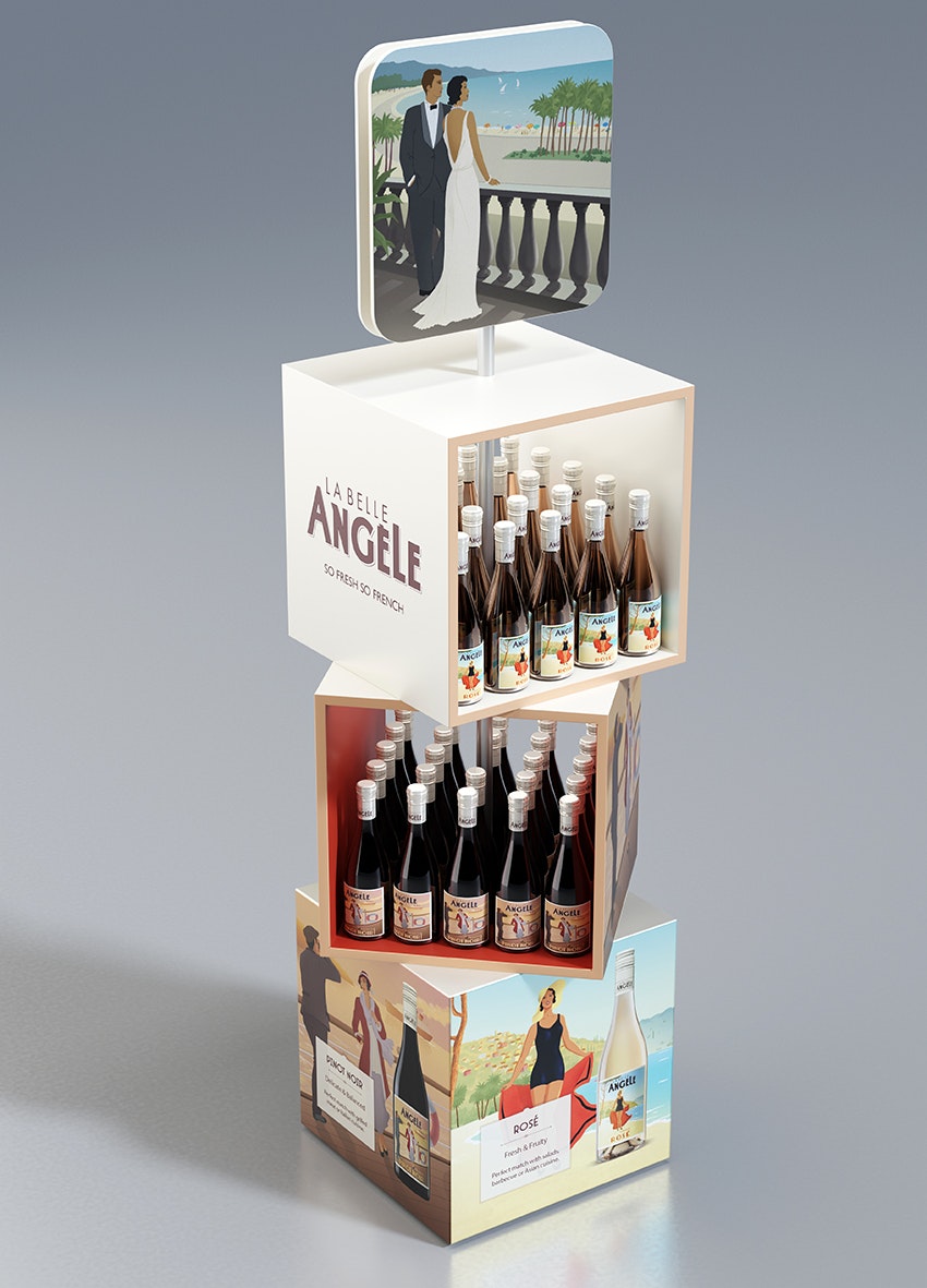 La Belle Angèle / PLV de sol, de comptoir, stop rayon, silhouettes, théatralisation.